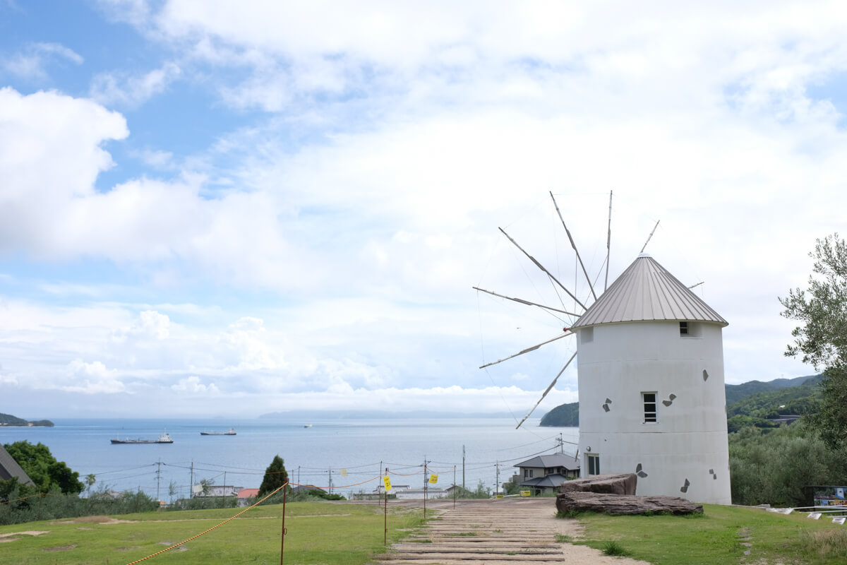 小豆島の写真としてよく見かけるあの風車のところ。島の真ん中あたりにある。