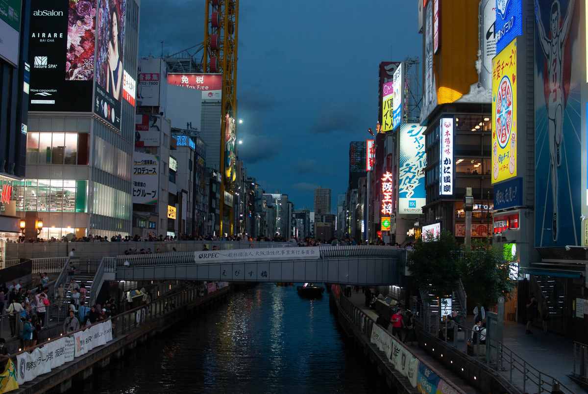 お腹が満たされて次に向かったのは道頓堀!雨なのに人が溢れていた。