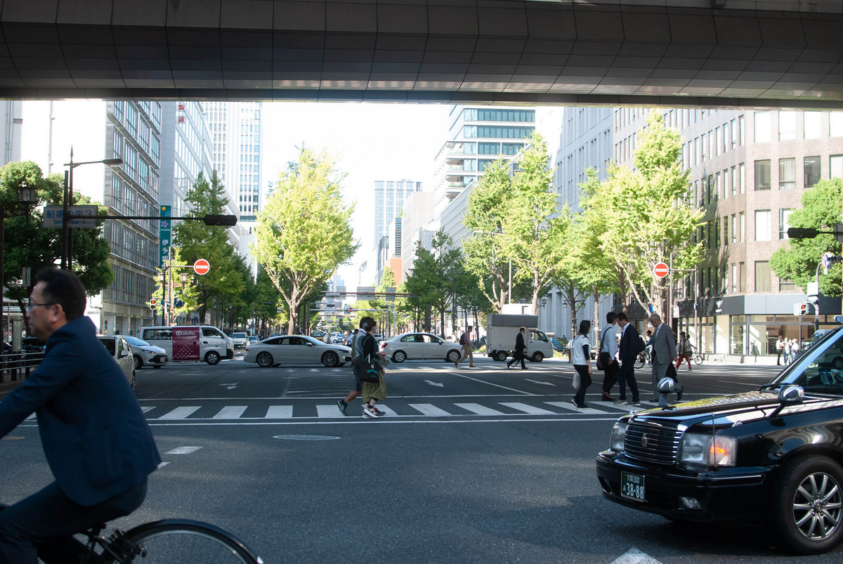 そのまま道を1本外に出ると、一気に空気が変わった。普通のオフィス街みたいな、癖のない道になった。